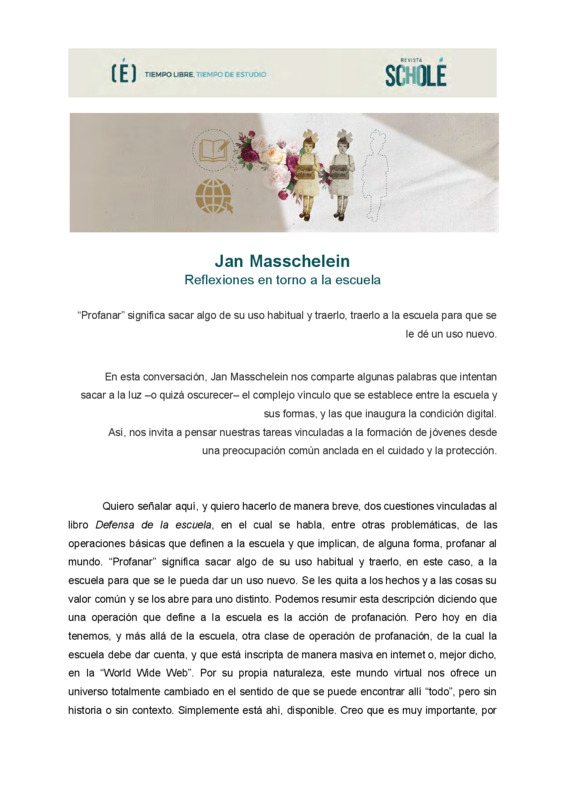 Parte de Entrevista a Jan Masschelein: reflexiones en torno a la escuela