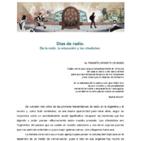- Este artículo conmemora los cien años de las primeras transmisiones de radio en el mundo y Argentina. La autora aprovecha la efeméride para pensar los medios masivos de comunicación; lejos de ser únicamente medios técnicos que transmiten información, son lugares donde se produce, circula y se apropia el sentido social, y afectan los modos en que los espectadores pensamos la realidad, la actualidad, el mundo en el que vivimos.