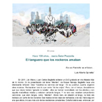 - En conmemoración de los cien años de nacimiento de Ástor Piazzolla, el artículo aborda la identidad argentina a partir de la música y su evolución, más específicamente la fusión entre el tango y el rock. Desde acá, el autor analiza cómo Piazzolla logra modernizar el tango, sacarlo de su tradición en nombre de la evolución, y desarrollar lo que hoy conocemos como Tango Nuevo.