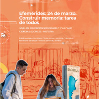 - "Construir memoria: tarea de todos" es una secuencia didáctica de Tu Escuela en Casa destinada a estudiantes de 1.º a 6.º año del nivel Secundario. En la secuencia convergen contenidos como el 24 de marzo, Día Nacional de la Memoria por la Verdad y la Justicia, identidad, desaparecidos, dictadura militar, crímenes de lesa humanidad, verdad histórica y memoria. Las actividades inician con el planteo de los sentidos asociados a la conmemoración: recordar a los desaparecidos por la última dictadura militar, acompañar a quienes fueron víctimas de torturas y de apropiación ilegítima de sus bebés, seguir reclamando por los nietos que aún faltan restituir a sus familias. La primera parada invita a pensar en nuestra historia, la segunda parada aborda la memoria histórica con una instancia de diálogo en familia, y la tercera parada invita a recuperar las voces de las y los estudiantes con un registro de sus impresiones.