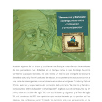 - En este artículo, se profundizan aspectos del seminario “Sarmiento y Rancière: contrapuntos entre civilización y emancipación”, que forma parte del ciclo Entre la Pedagogía y la Cultura. La propuesta, que problematiza los conceptos de civilización y emancipación, pretende reflexionar sobre los diversos dispositivos construidos para la transmisión de las obras de Sarmiento y de Rancière.