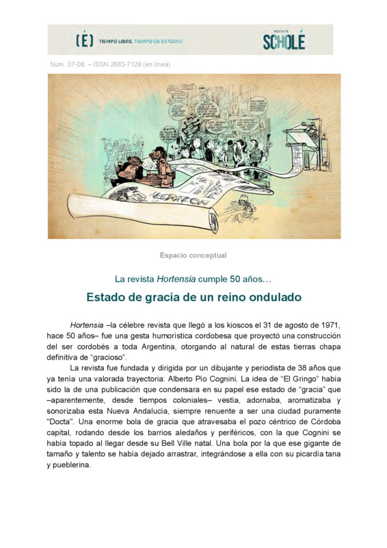 Lomsacov, Iván | El artículo presenta la historia de la revista Hortensia fundada hace 50 años en Córdoba. El autor la denomina como “una gesta humorística cordobesa que proyectó el ser cordobés a toda Argentina”, y es justamente esta instancia federal del humor lo que el artículo desarrolla. |