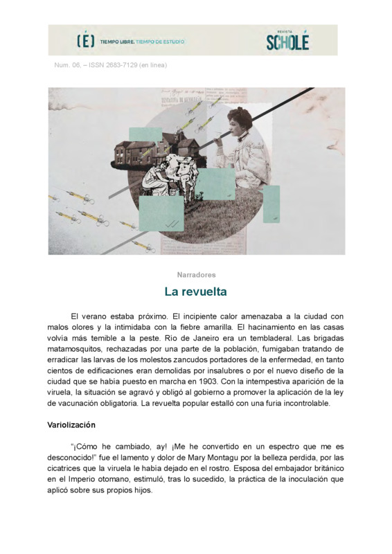 Wolovelsky, Eduardo | El artículo desarrolla la llamada Revuelta de las vacunas, sucedida en Río de Janeiro en 1904, cuando se instauró una ley de vacunación obligatoria para atacar la epidemia de viruela. Con la pandemia como contexto, en este texto el autor presenta varias evidencias que deberían alcanzar para defender la vacunación, pero considera que aún hoy hay quienes se oponen por supuestos efectos nocivos a la salud que no han sido demostrados. Por esto mismo, presenta la revuelta de Río con el deseo de que sirva para entender la relevancia de explicar, de dar a conocer y permitir comprender las enfermedades y las vacunas, para así poder tomar nuestras propias decisiones. |