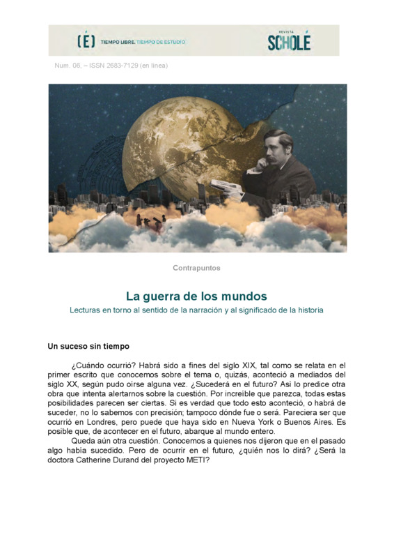 Revista Scholé | El artículo contrapone distintas versiones de La guerra de los mundos de H. G. Wells, obra clásica de la literatura universal del siglo XX, donde su autor observa los riesgos de la soberanía tecnológica del mundo europeo. |