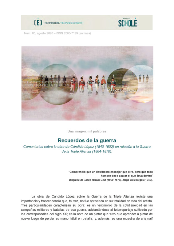 Novek, Cezary | El artículo recorre la vida y obra de Cándido López, que estuvo marcada por la Guerra de la Triple Alianza y la del Paraguay. En tanto este artista pintaba paisajes de los campamentos militares, el texto describe y analiza cómo, desde una narrativa pictórica, su obra es reconocida hasta nuestros días debido a que, lejos de idealizar la guerra, López la muestra con crudeza. |