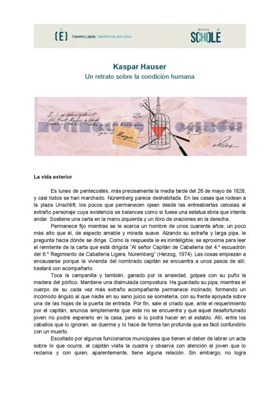 Revista Scholé | En este artículo, el autor aborda el caso europeo de Kaspar Hauser para proponer que así como no podemos pensar a las personas como pura biología, tampoco como tabulas rasas que nacen con la mente en blanco y dependen únicamente de la calidad de la educación que reciban. El artículo reflexiona sobre el deber de asumir aquello que nos limita en tanto acto político que decide sobre y contra la desigualdad biológica. |