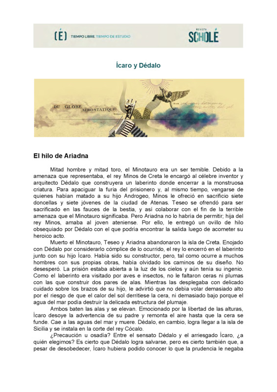 Wolovelsky, Eduardo | Este artículo aborda el mito de Ícaro y Dédalo en relación al deseo de volar, pero también al planteo de sus riesgos, para hacer un repaso de los primeros instrumentos y herramientas a nivel mundial y nacional que permitieron que hoy pudiésemos volar en avión. |
