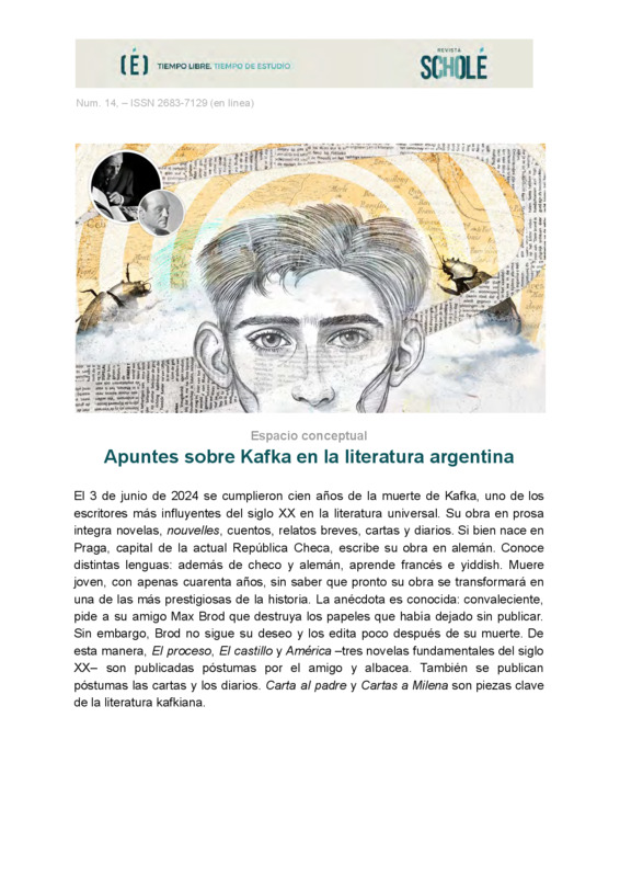 Luzuriaga, Pablo | En conmemoración de los cien años de la muerte de Kafka, el autor del artículo rescata su figura como uno de los escritores más influyentes del siglo XX en la literatura universal, y corrobora el carácter germinador que tuvo su obra en Argentina para algunos de los grandes referentes de nuestra literatura. |