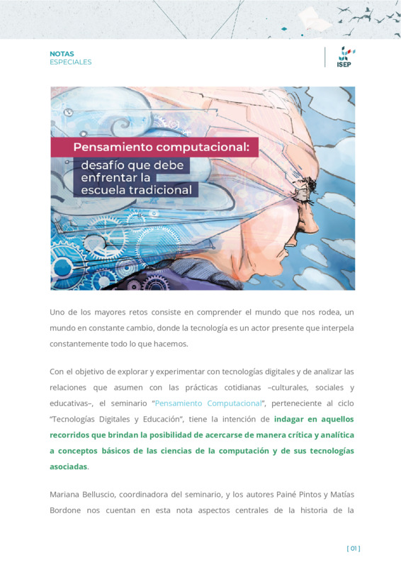 Orlandi, María ElizabethTonti, Danilo | Proponemos un recorrido hacia una mirada pedagógica sobre el pensamiento computacional y por los modos en los que se hace presente en la escuela y en el saber docente. |