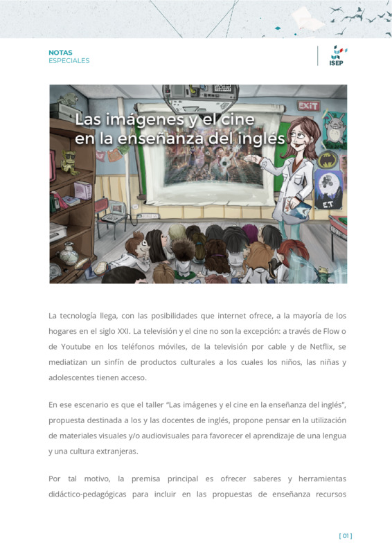 Orlandi, María ElizabethTonti, Danilo | El taller “Las imágenes y el cine en la enseñanza del inglés”, propuesta destinada a los y las docentes de inglés, propone utilizar materiales visuales y/o audiovisuales para favorecer el aprendizaje de una lengua y una cultura extranjeras. |