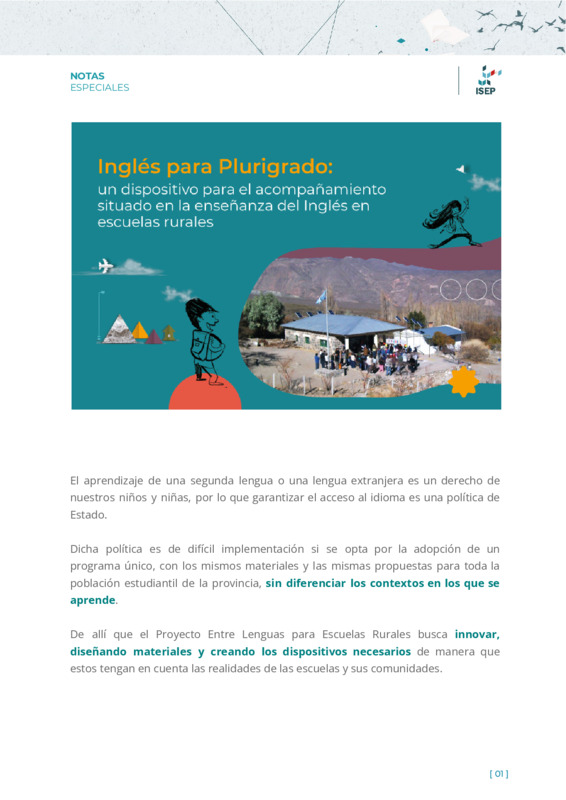 Orlandi, María ElizabethTonti, Danilo | Se trata de una propuesta de aprendizaje especialmente diseñada para las necesidades de estudiantes y docentes rurales. El proyecto recupera los ejes temáticos del diseño curricular y los plasma en actividades, en materiales audiovisuales y en guías de acompañamiento para los docentes. |