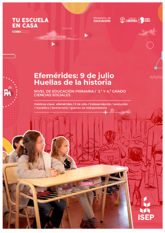 Moyano, EstelaPedrazzani, CarlaRamallo, Sabrina | "Efemérides: 9 de Julio. Huellas de la historia" es una secuencia didáctica de Tu Escuela en Casa destinada a 3.º y 4.º grado de nivel Primario. Consiste en una propuesta que integra contenidos y aprendizajes de los diversos ejes curriculares del nivel. La secuencia se centra en contextualizar la declaración de independencia en el marco del proceso revolucionario abierto en 1810 y la guerra que se inició con él. Las diferentes actividades ofrecen la posibilidad de que los niños y niñas completen una línea de tiempo sobre el período y de que, a través de la lectura de imágenes, reconozcan aspectos de la vida cotidiana de la época y sus formas de conmemoración. |