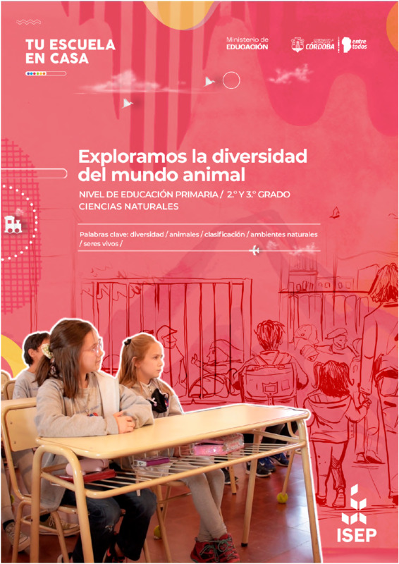 Diminich, María Cecilia | "Exploramos la diversidad del mundo animal" es una secuencia didáctica de Tu Escuela en Casa destinada a 2.º y 3.º grado de nivel Primario. Consiste en una propuesta que integra contenidos y aprendizajes del eje curricular: El mundo de los seres vivos, de Ciencias Naturales. La secuencia se centra en el abordaje de la observación y exploración de animales para poder introducir la diversidad de seres vivos en relación al ambiente que habitan y que les permiten sobrevivir y adaptarse. Las diferentes actividades ofrecen la posibilidad de que los niños y niñas reconozcan algunas de las características externas de los seres vivos e identifiquen algunos criterios posibles de clasificación. |