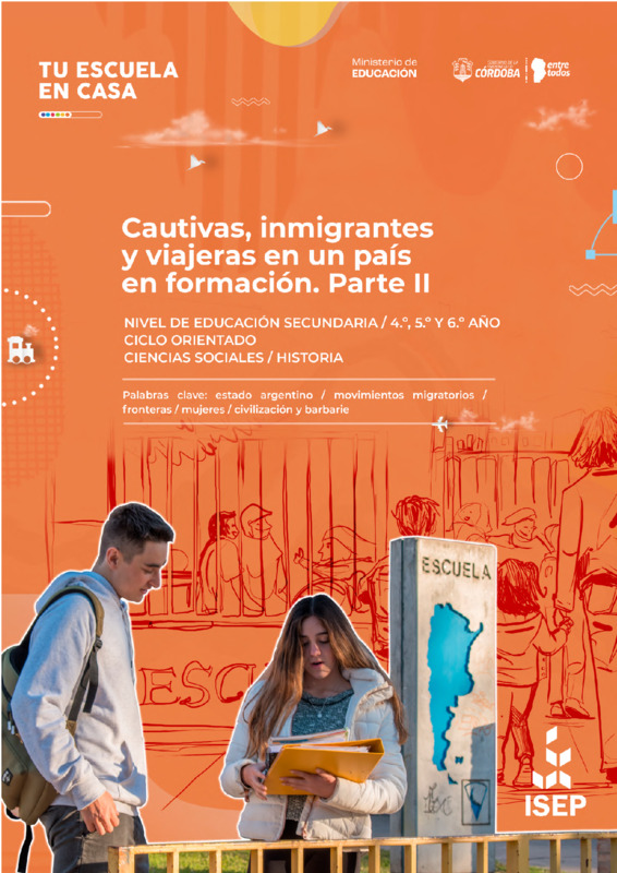 Gencarelli, CandelaMoyano, EstelaPedrazzani, CarlaSegal, Analía | "Cautivas, inmigrantes y viajeras en un país en formación (Parte II)" es una secuencia didáctica de Tu Escuela en Casa destinada a 4.º, 5.º y 6.º año del Ciclo Orientado de nivel Secundario. Consiste en una propuesta que integra ejes del campo de Historia. La secuencia se centra en el análisis del pensamiento positivista como principio explicativo de los posicionamientos y las acciones políticas, sociales, culturales, científicas durante la segunda mitad del siglo XIX. Además, se aborda la explicación de las transformaciones demográficas y sociales en el área pampeana reconociendo los nuevos sectores dominantes, la expansión de los sectores medios y la renovación de los sectores populares. Se trabaja la comprensión de los cambios sociales que se presentan en relación con cuestiones de género, edad, origen, acceso a los bienes culturales y materiales, entre otros, y por último, se enfoca en el interés por aportar al mejoramiento de las condiciones de vida sensibilizando acerca de las problemáticas sociales y su influencia en el propio proyecto de vida. Las diferentes actividades ofrecen la posibilidad de que las y los adolescentes logren abordar la complejidad de la vida en las zonas de frontera como espacio de intercambios culturales, y el lugar de las mujeres a fines del siglo XIX. En esta segunda parte, las actividades ponen el foco en la vida cotidiana de las mujeres en las tolderías. |