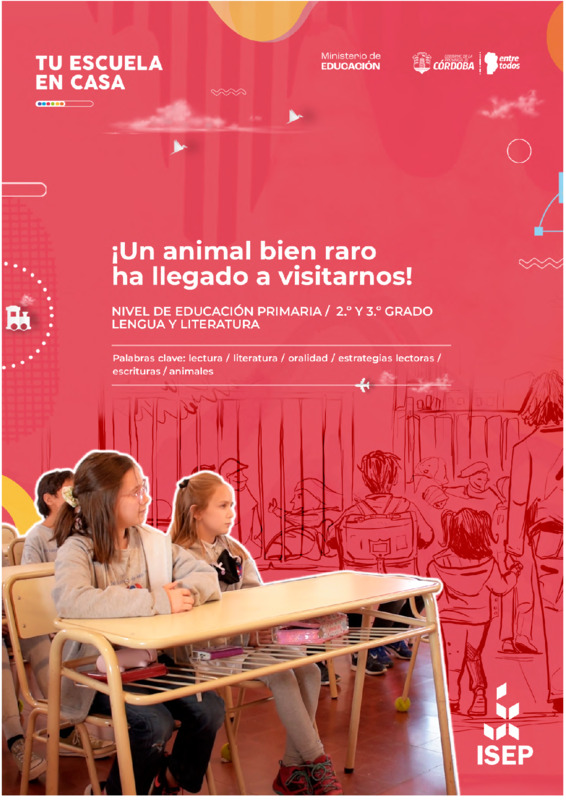Doria, NoeliaYepes, Silvia | "¡Un animal bien raro ha llegado a visitarnos!" es una secuencia didáctica de Tu Escuela en Casa destinada a 2.º y 3.º grado de nivel Primario. Consiste en una propuesta que integra ejes del campo de la Lengua y Literatura. La secuencia se centra en el abordaje en torno a las experiencias de lectoescritura, interpretación, apreciación. Se brindan además espacios de trabajo en torno a narraciones y reflexiones que buscan el abordaje de organización estructural de esas escrituras. Las diferentes actividades ofrecen la posibilidad de que los niños y las niñas dejen volar su imaginación, usando poemas y cuentos como disparadores. De esta manera se irán preparando para crear no solo sus propios personajes animales sino además la historia que girará en torno a esa decisión creativa. |