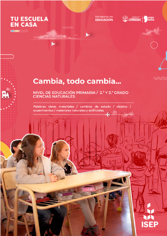 Bruno, Gabriela Alejandra | "Cambia, todo cambia…" es una secuencia didáctica de Tu Escuela en Casa destinada a 2.º y 3.º grado de nivel Primario. Consiste en una propuesta que integra contenidos y aprendizajes del eje curricular: El mundo de los fenómenos físico-químicos, de Ciencias Naturales. La secuencia se centra en la realización de distintas producciones con énfasis tanto en la lectura y la escritura como en la observación y el reconocimiento de los diferentes estados de la materia. Las diferentes actividades ofrecen la posibilidad de que los niños y niñas identifiquen algunas de las características de los estados de agregación y sus cambios en diferentes objetos de la vida cotidiana. |